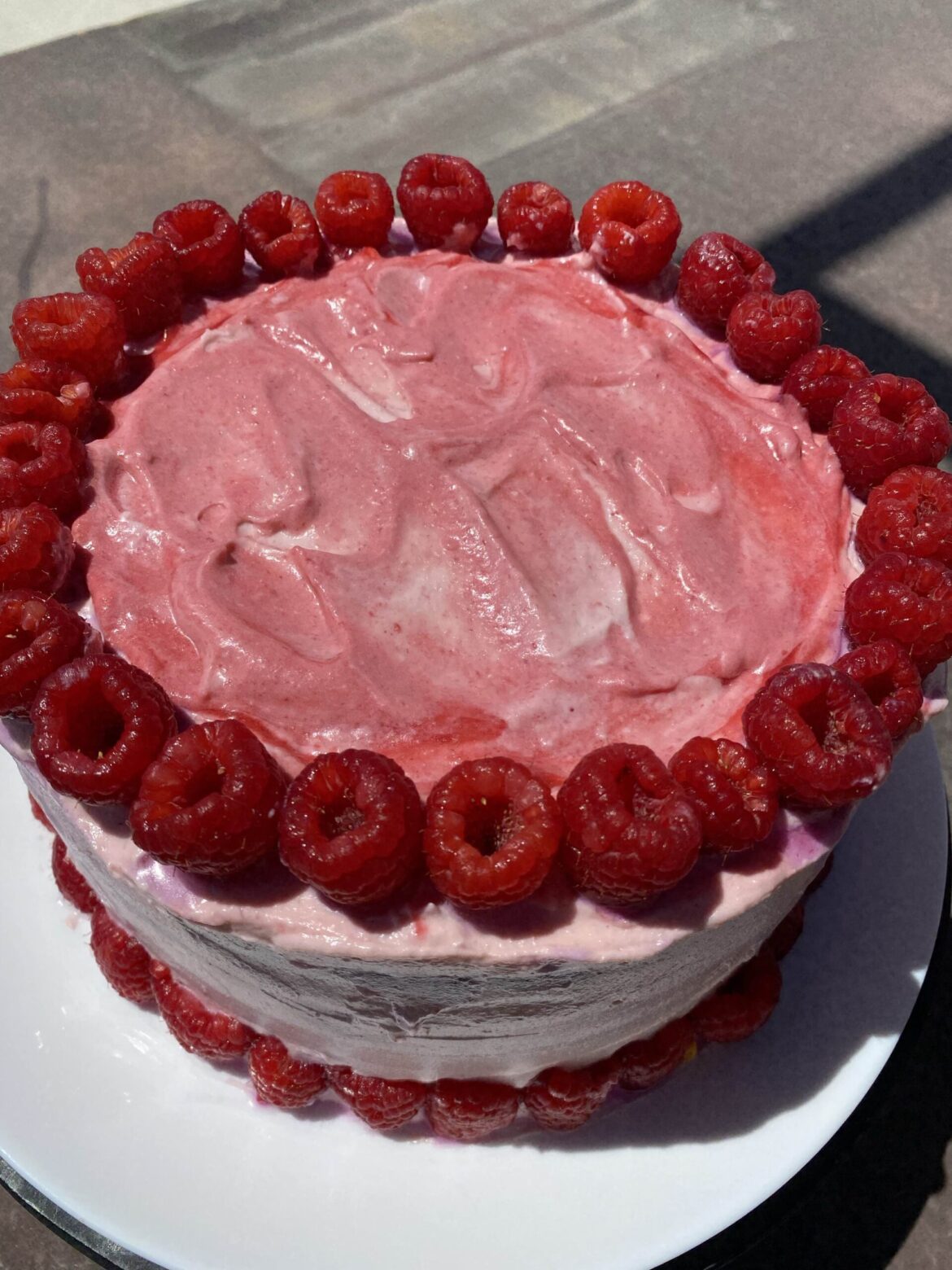 In a bowl, mix vinegar, sour cream, vanilla extract, and food coloring.